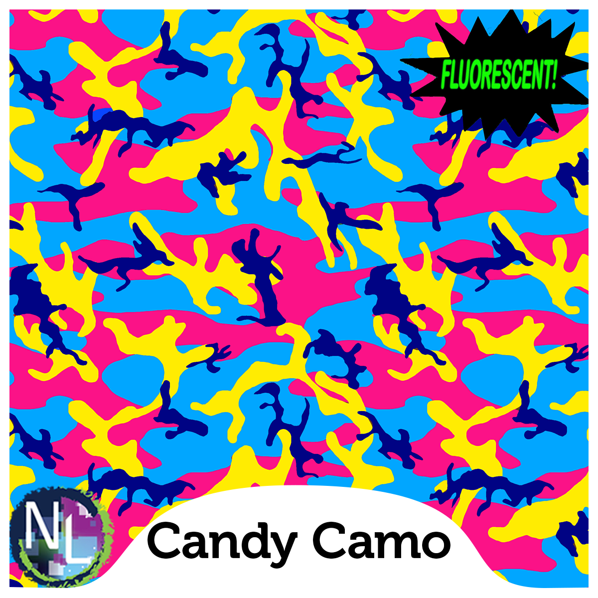 Candy Camo ft. (NEW) Fluorescent Inks in colors of pink, blue, & yellow.